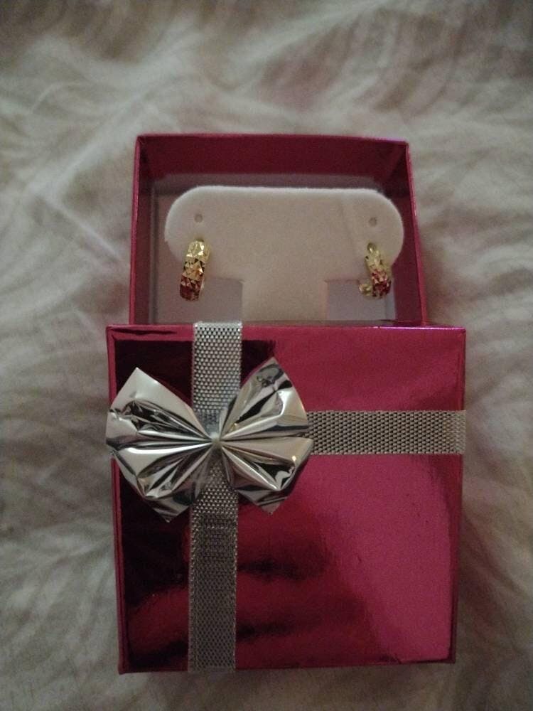 Earrings are beautiful and as described. They click securely in place and come in a cute little gift box. Very happy with my purchase.