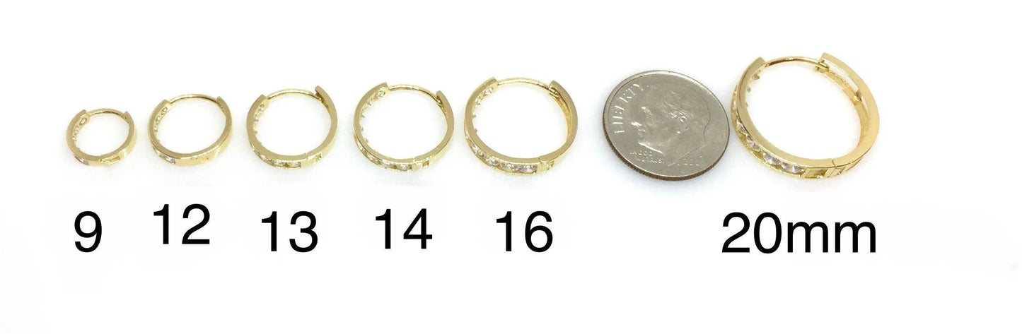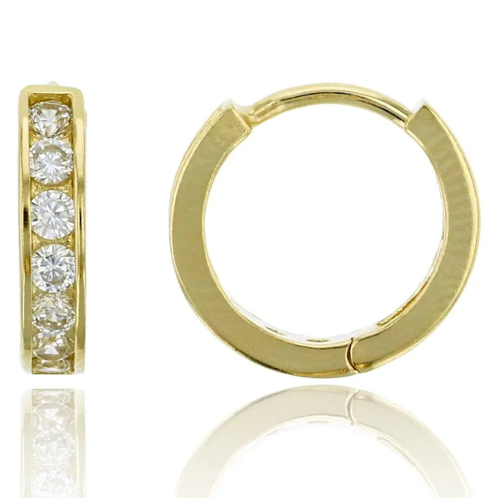 ADIRFINE 14K Solid Gold Cubic Zirconia 9MM Huggie Hoop Earrings
